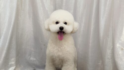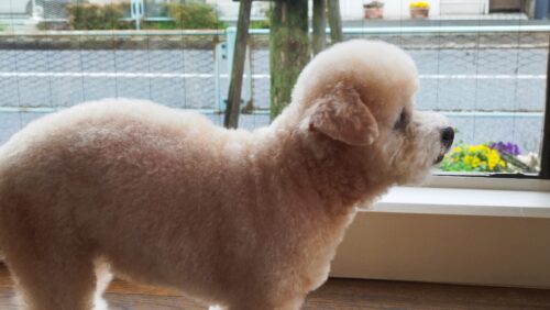 プードルのあぷりちゃん お顔のカットがいよいよイヤイヤ期かも??(T.T) お家でもお顔周りのケアは嫌がるそう…