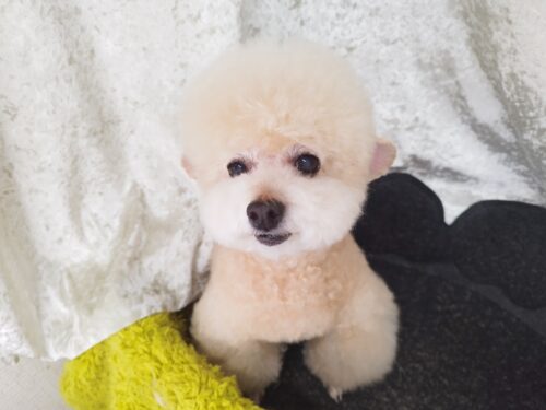 プードルのうりちゃん 前回に引き続き今回もシャンプーコース♪ 冬に向けてモコモコ作戦かしら? ハーブパック中は…