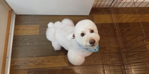 プードルのあぷりちゃん 今日はシャンプーDAY♪ 出来物が痒いのかカジカジしてしまうそうで 絆創…