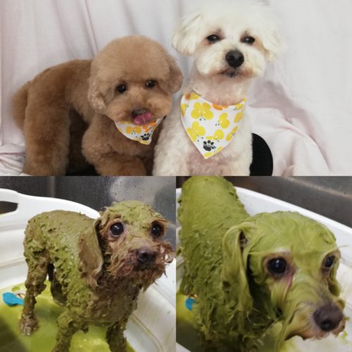 マルプーのそうたちゃんとプードルのあんずちゃん 今日は仲良くお散歩しがてら揃ってお手入れ♪ 2ワンコともハーブ…