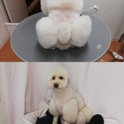 プードルのもも太郎ちゃん 衣替え♪ 寒い間は羊さんでモッコモコ~~~していましたが 暖かくなってきたので チェ…