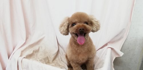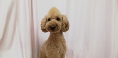 プードルの ロアちゃん 今日もすっきりモヒカンスタイル♪ お耳の表面をさらりと取ってボリュームダウン もつれに…