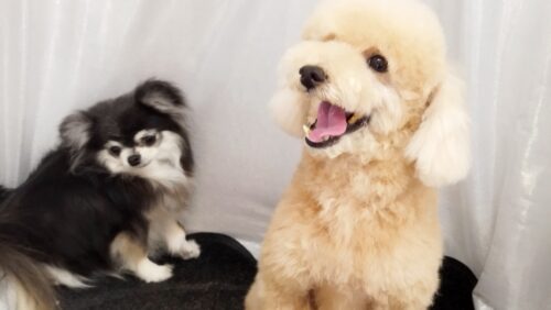 プードルのモカちゃんとチワワのニコちゃん モカちゃんはお肌のチェックをしたらマラセチア菌が居なっていたそう! …