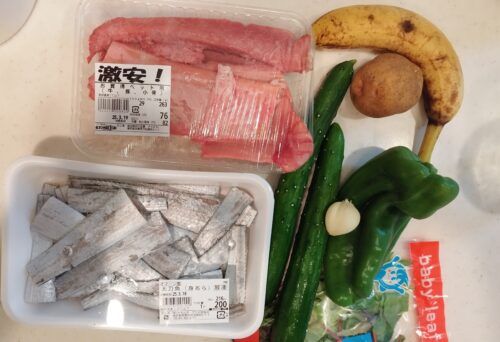 今週のトッピングストックは 太刀魚のあら 「ペット用お肉」と売られていたもの じゃがいも バナナ…
