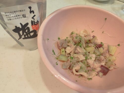 自分の食事に鶏もも肉を使ったので 今日はストックを使わず サっと茹でておすそ分け♪ 塩はプチ贅沢(*´艸`) …