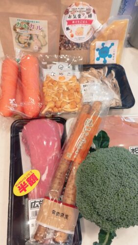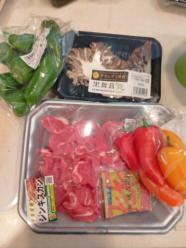今回の中身は… ラム肉 マイタケ ピーマン 赤&黄パプリカ ブロッコリースプラウト カルシウムパウダー お塩 …