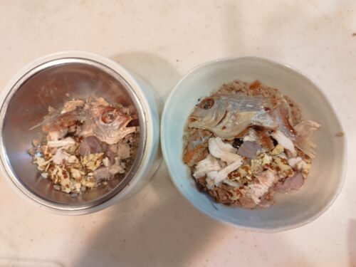 トッピングのストックが無くなった… ドライ鶏そぼろ と ミックスベリー 食べるかな?ちょっと不安だったけど ぜ…