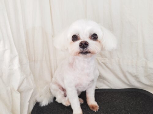 マルチーズのらんちゃん ブラッシングが大の苦手で お家でもお風呂やドライヤーは進んで来るのに ブラシだけは怒る…