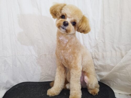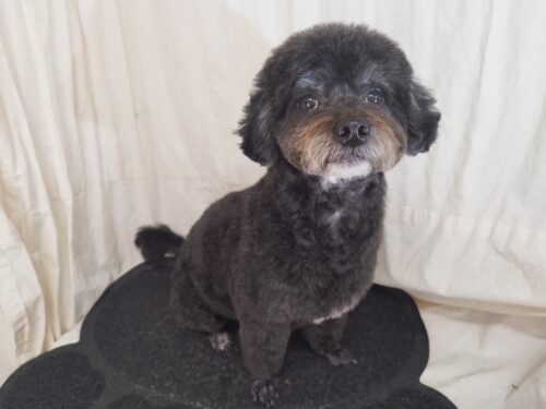 チワプーのあずきちゃん トップノットしたい!と伸ばし始めた7月末 それから5か月 良い感じに伸びているかな??…