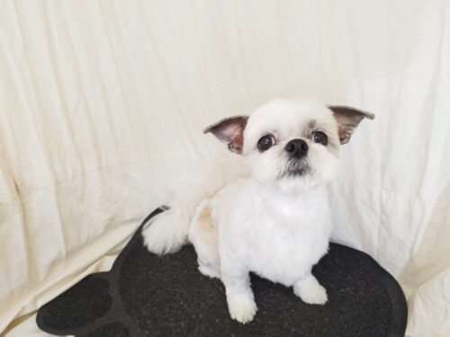 シーズーのももちゃん 静電気のせいかお耳の毛がΣ(゚д゚lll)ガーン とかしているんだけどすぐこうなっちゃ…
