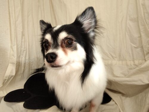 チワプーのレオちゃん 目周りの伸びた毛が気になりママミング でも切りすぎてしまう傾向にあり 今日に向けて切らず…