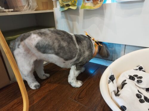 プードルのゆずちゃん お手入れしているとお腹のあたり触ると痒そう 乾燥気味もあり赤いポチもできている・・・これ…