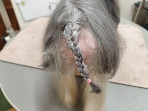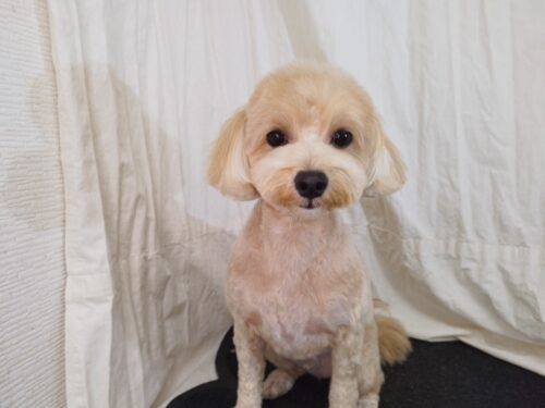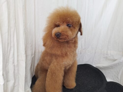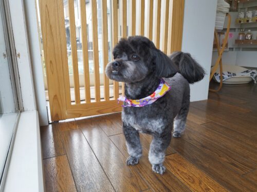 プードルのミエルちゃん お手入れが終わると 初めは外を見ながらお迎えを待っていたのですが 次の子のお手入れを始…