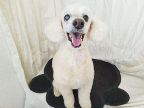 プードルの花ちゃん お店に来てフリーになると 先ずはベッドにチョコン(^^) お気に入りね♪ お手入れが終わっ…