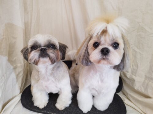シーズーのつくしちゃん&あくびちゃん 太くしていた四肢 色々くっついてきちゃって大変(><)なので…