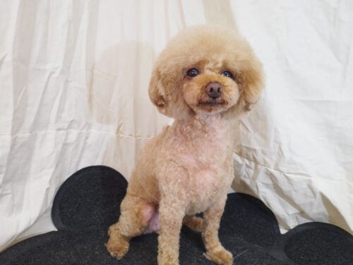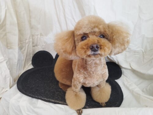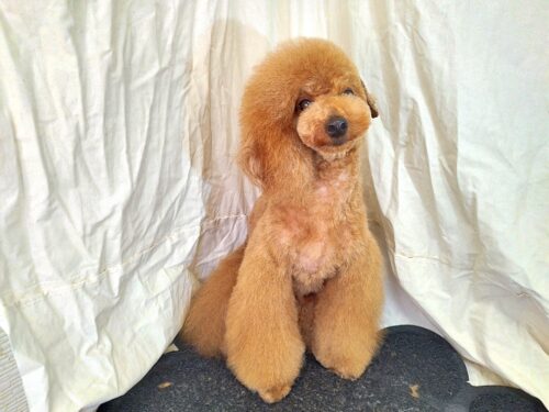 プードルのハナちゃん コート着てすっかりお散歩♪かと思ったら お手入れでした! 残念(^^;) でも店内では …