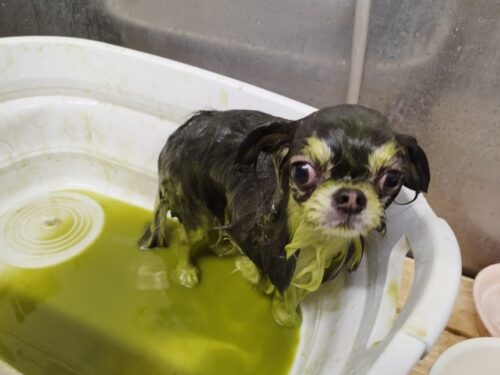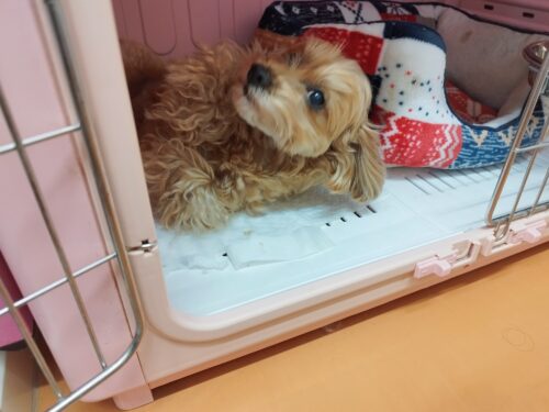 ロンチのちょこちゃん お手入れ開始と共にママさんはお買い物へGo! すると いつ戻るかとずっと入口を注視(@。…