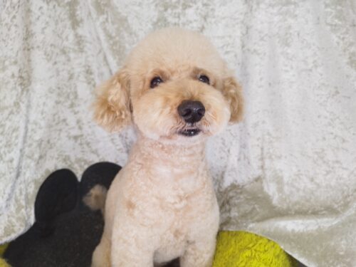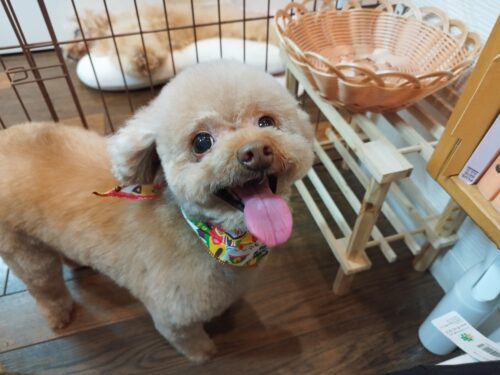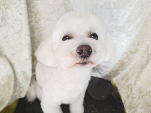 プードルのアムルちゃん 頭とお耳をつなげた丸っこいヘアスタイルに移行中! お耳は三角に、、、と話していたのです…