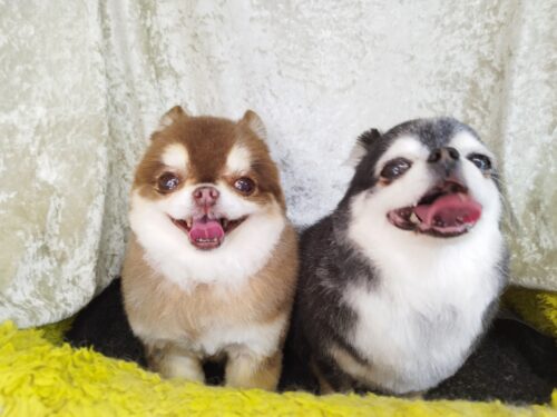 ロンチのもんちゃんとぷーちゃん 8歳の男の子と女の子(*^^*) 穏やかな2ワンコで お迎え待ちもチーンと外を…