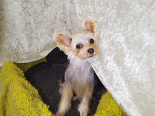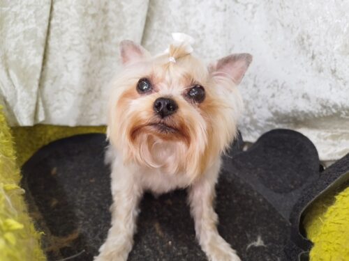 ヨーキーのあいちゃん 長さは良い感じなんだけど。。。 ブラッシングが限界(T.T)とママさん 体の内側を短くし…