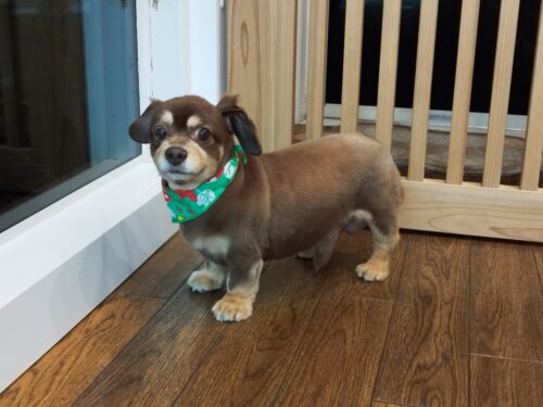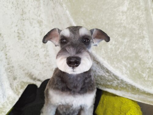 ミニシュナの福ちゃん 今日から少しずつ長めのカットで これからの季節に備えます♪ …