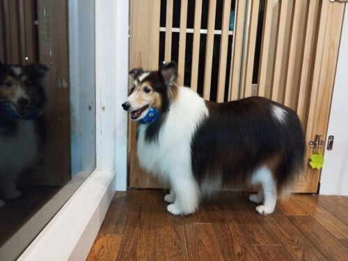 シェルティのトーマちゃん 所々に炎症の跡が。。。 お薬ぬりぬりしていたそうでその治りかけかしら? ただ、、、筋…