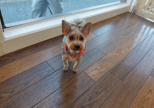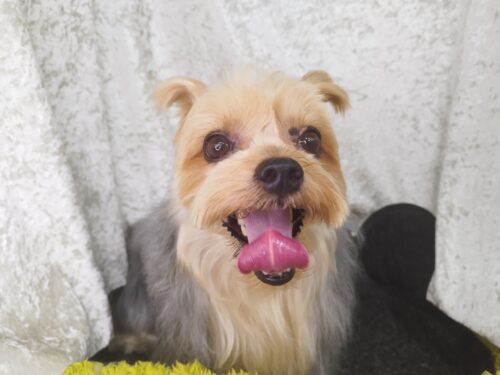 ヨーキーのリアちゃん ロングヘアーにしているので お洋服は着ないようにして頂いているものの お散歩はハーネスを…