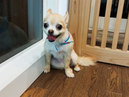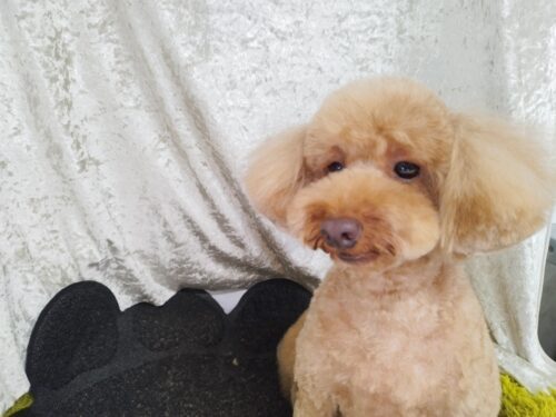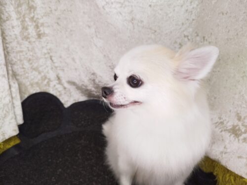 プードルのポンちゃん 置いて行かれるのがわかってか ママさんの後ろに隠れてこんにちはしてくれない(T.T) お…