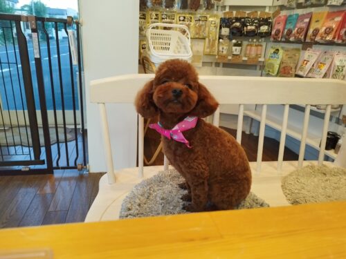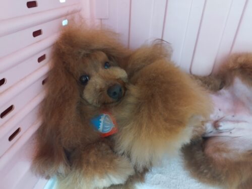 プードルのゆずちゃん お迎え待ちしている姿を外から見るのが楽しみ♪だったママさんですが ごめんなさい ヘルニア…