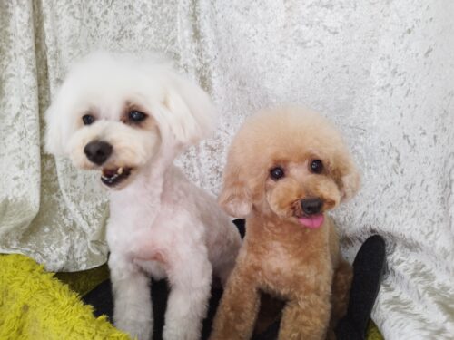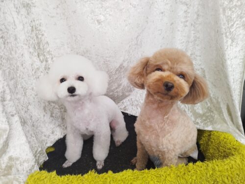 プードルのナッツちゃんとクーちゃん ナッツちゃん足先バリカン初挑戦! でしたが 特に抵抗なくお手入れさせてくれ…