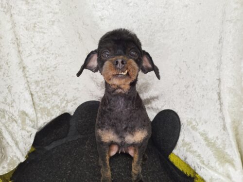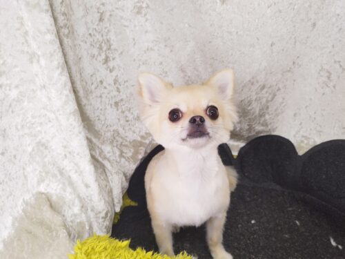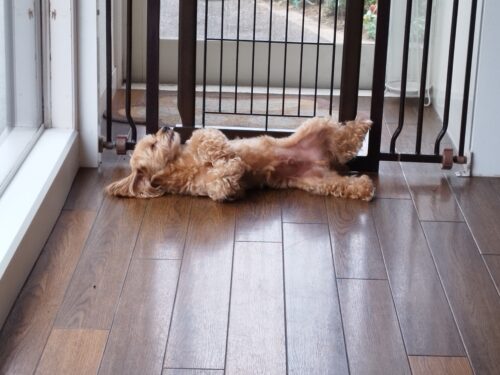 チワプーのティノちゃん ゴロ~ンな状態でお手入れ待ちしている姿 激写!!!(*^^*) そんな姿でいるから通行…
