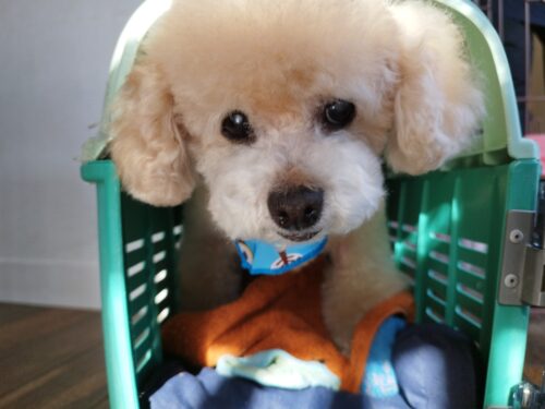 プードルのあぷりちゃん ずっと動き続けてしまうという ハイシニアの子に多い現象が始まってきたみたい(T.T) …