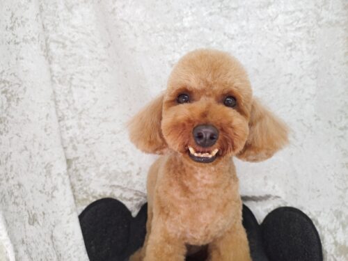 プードルのミエルちゃん パパさんがお迎えに来たのに ぜぇ~~んぜん気づかず お手入れ中のちろるちゃんに夢中 ち…