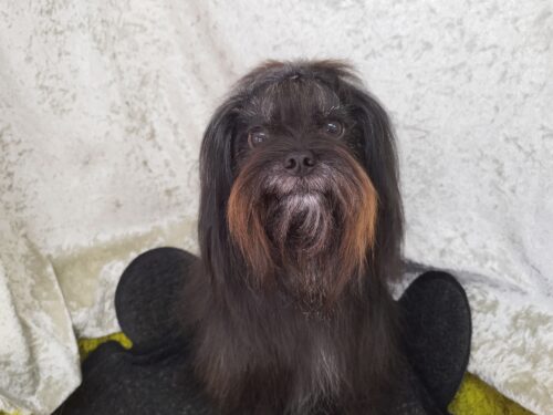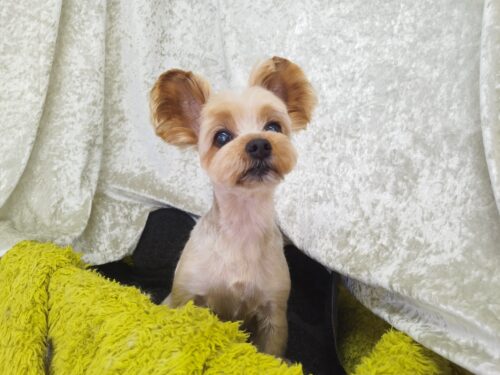 ヨーキーのひじきちゃん お顔を洗われるのが嫌い きっとお家でもお口回り嫌がるのかしら? 何やらついてる(^^;…