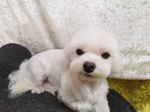 マルチーズのるぅちゃん ゴールデンのリリーちゃんをカット中に到着し パパさん外でまた後で来るね!的なジェスチャ…