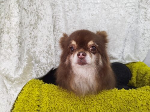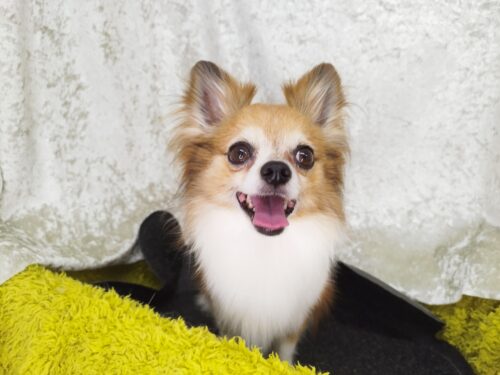 チワプーのたいちゃん 暑くなってきたので内側(お腹の方)は短くしたものの 外見はロングコート維持♪ おめめの上…