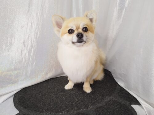 チワプーのらんちゃん お迎えを待っている時に チッチ♪ は良いのですが、、、 動かないでね(@。@) ちょっと…