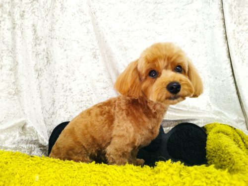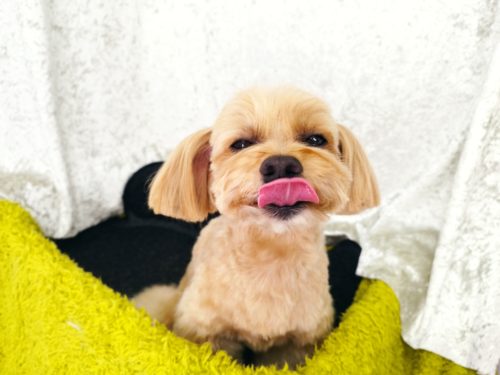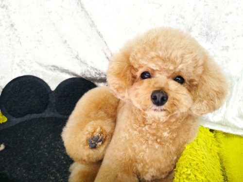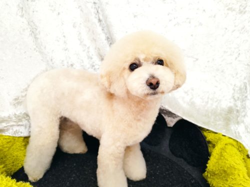 プードルのいくらちゃん ブラッシングが苦手で 足先に向けてフワッとさせているブーツカットが どんどん細くなって…