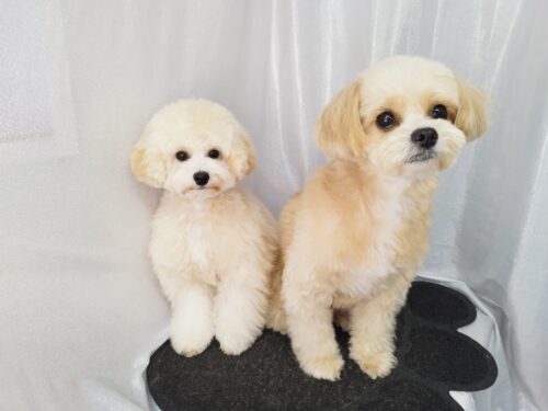 ポメプーのぽむちゃんとビションプーのるるちゃん ぽむちゃんのお手入れを先に始めていると るるちゃんが かまって…