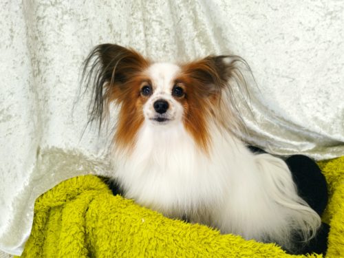パピヨンのテトちゃん 静電気シーズン真っただ中! のためかしら? ちょこちょこっと玉ちゃんが いつもは見られな…