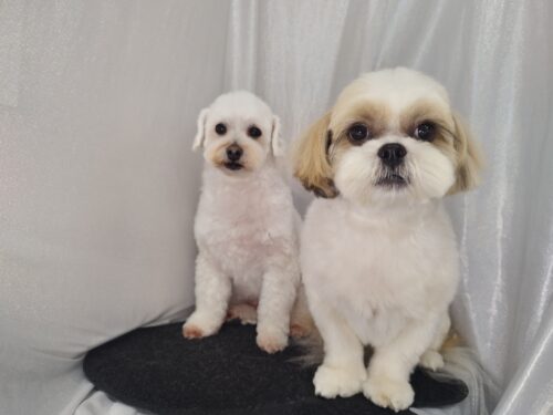 シーズーのこむぎちゃんとマルプーのシロちゃん ほわほわ系に冬支度♪♪ こむぎちゃんのお肌。。。 …