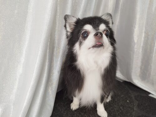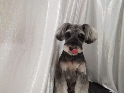ミニシュナのクウちゃん フンワリ伸ばしたお耳の毛 サッパリしちゃおうかなぁ、、、どうしようかなぁ、、、 ペラ耳…
