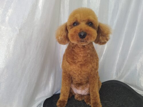 プードルちゃん お迎え待ちでフリーになっていると 足元に寄って来てジィー~~と見てくる 抱っこ?? ひざに乗せ…