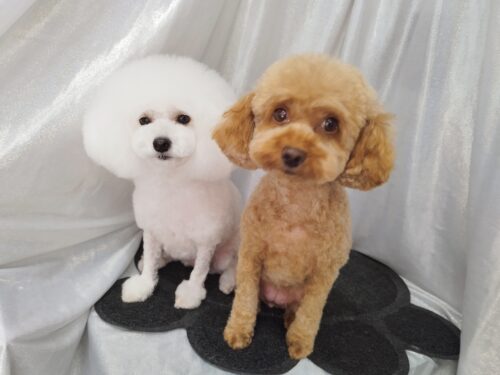 プードルのナッツちゃんとクーちゃん クーちゃんは相変わらず足先のブラッシングが苦手で なんとかかんとか頑張って…