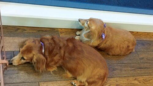 ダックスのリオちゃんとコタちゃん とっても穏やかコンビ 他のお客様が居ると こんにちわ(^^)と寄って行く♪♪…