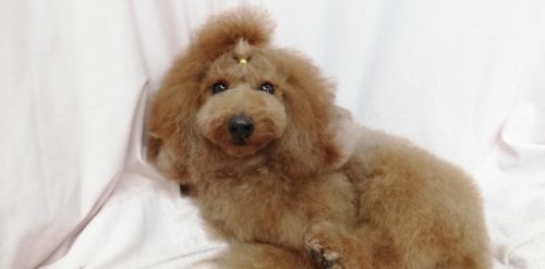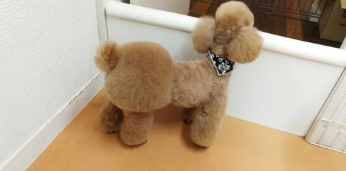 プードルの ロアちゃん 今日もすっきりモヒカンスタイル♪ お耳の表面をさらりと取ってボリュームダウン もつれに…