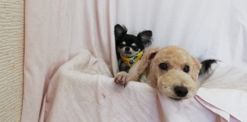 プードルののんちゃんとマルキーのあんこちゃん 予定よりだいぶ早くのご来店に あら!早いですね(^^)と言ったら…