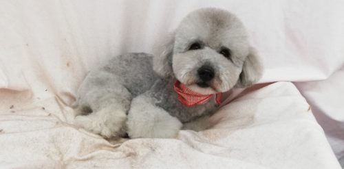 ロンチの レオちゃん お胸の飾り毛が気になるそうで そこだけちょこっとだけカット(^^) いつもチンとしてお手…