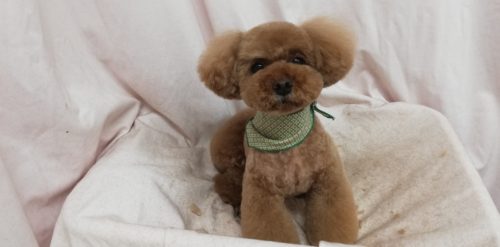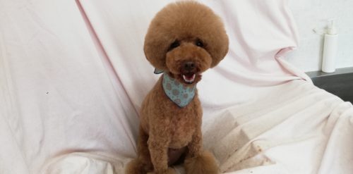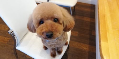 トイプードルの ミエルちゃん おや?今日はパパさんから離れても一声も発せず これはお初♪ 今日もお腹のバリカン…