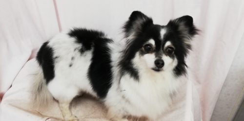 パピヨンとプードルのミックス犬 チャムちゃん 来た時はママと一緒に帰るぅ~~と 置いて行かれる事にブルブルブル…